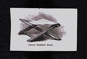 Jenny Geddes (c. 1600 – c. 1660) was a Scottish market-trader in Edinburgh, who is alleged to have thrown her stool at the head of the minister in St Giles' Cathedral in objection to the first public use of the Anglican Book of Common Prayer in Scotland.