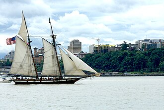 The ship at the center of the ad is a schooner, which bears a close resemblance to the Lynx. The Lynx is a 2001 reproduction of a ship of the same name that sailed during the War of 1812. Displacing 114 tons, the Lynx is 76 feet in length over all, with a sparred length of 122 feet, a 23-foot beam and a draft of 9 feet. She is fitted with period ordnance and flies pennants and flags from the 1812 era.